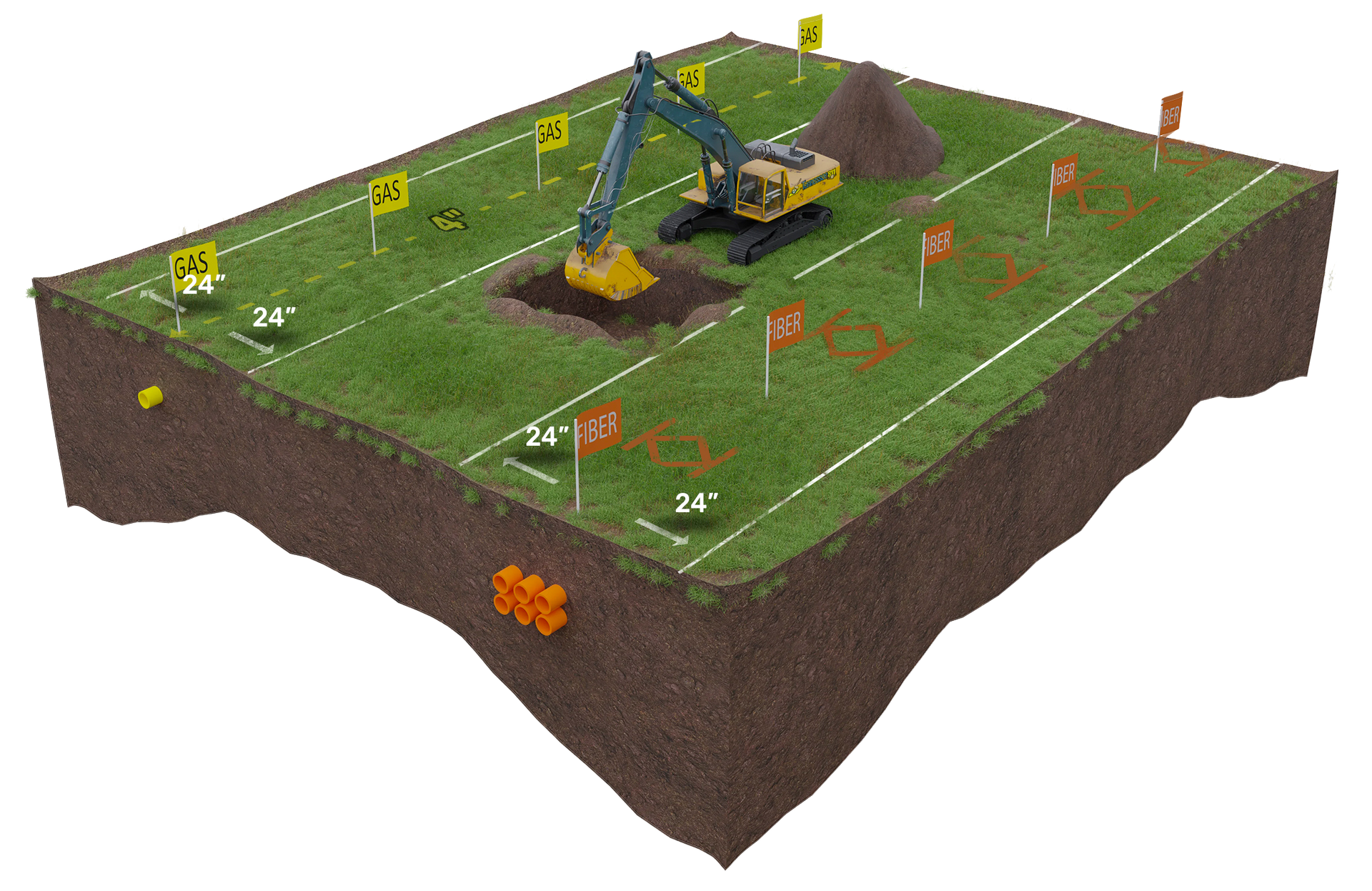 Underground facilities may be marked on the ground in either paint, stakes, or flags.